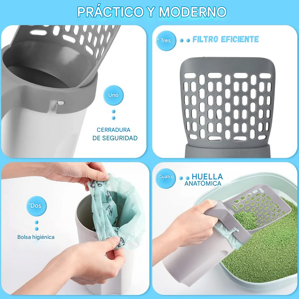 Diseño práctico, nuestra pala de arena es una combinación inteligente de bolsa de arena y soporte. No más pasos tediosos, lo que te permite limpiar tu caja de arena rápida y fácilmente con una sola mano. Cuando hayas terminado, simplemente retira la cuchara de la caja de arena, ata la bolsa en su lugar y tírela.Material de alta calidad, la pala de arena para gatos está hecha de material de resina ABS + PP de alta calidad. Su superficie lisa lo hace resistente a la corrosión, muy duradero y duradero.Fácil de limpiar, esta pala multifuncional tiene un borde frontal ancho para limpiar esquinas profundas. Después de su uso, la cuchara de arena se puede enjuagar directamente con agua.Esta pala multifuncional tiene un borde frontal ancho para limpiar esquinas profundas. Después de su uso, la cuchara de arena se puede enjuagar directamente con agua.